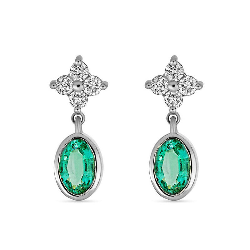 2025 New Exquisite Fashion Vintage Design Jewelry S925 18K Gold Oval Cut Emerald Diamond Zircon Drop Pendant Earrings
