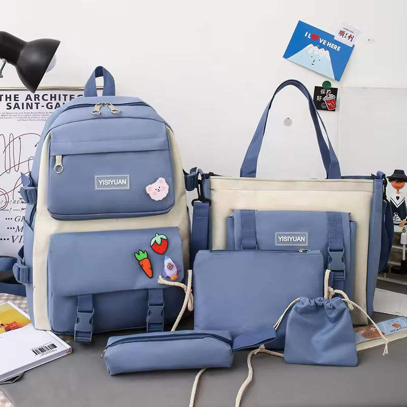 2025 New Fashion 5-Piece Student School Bag Set Cartoon Pattern Zipper Preppy Style Air Cushion Belt Unisex Teenagers Backpack