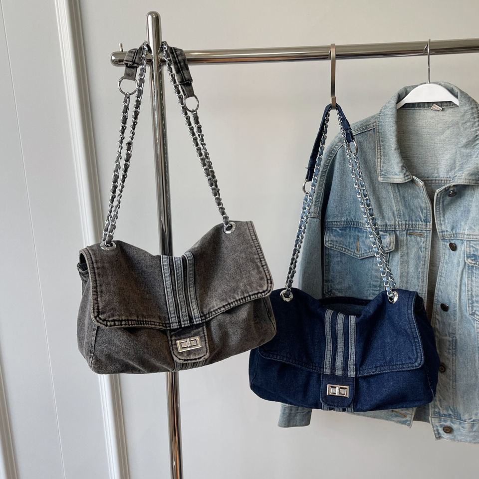 2025 New Fashion Casual Denim Handbags for Women Wholesale Large Capacity Tote Stripe Crossbody Jean Bag Two Portable for Autumn