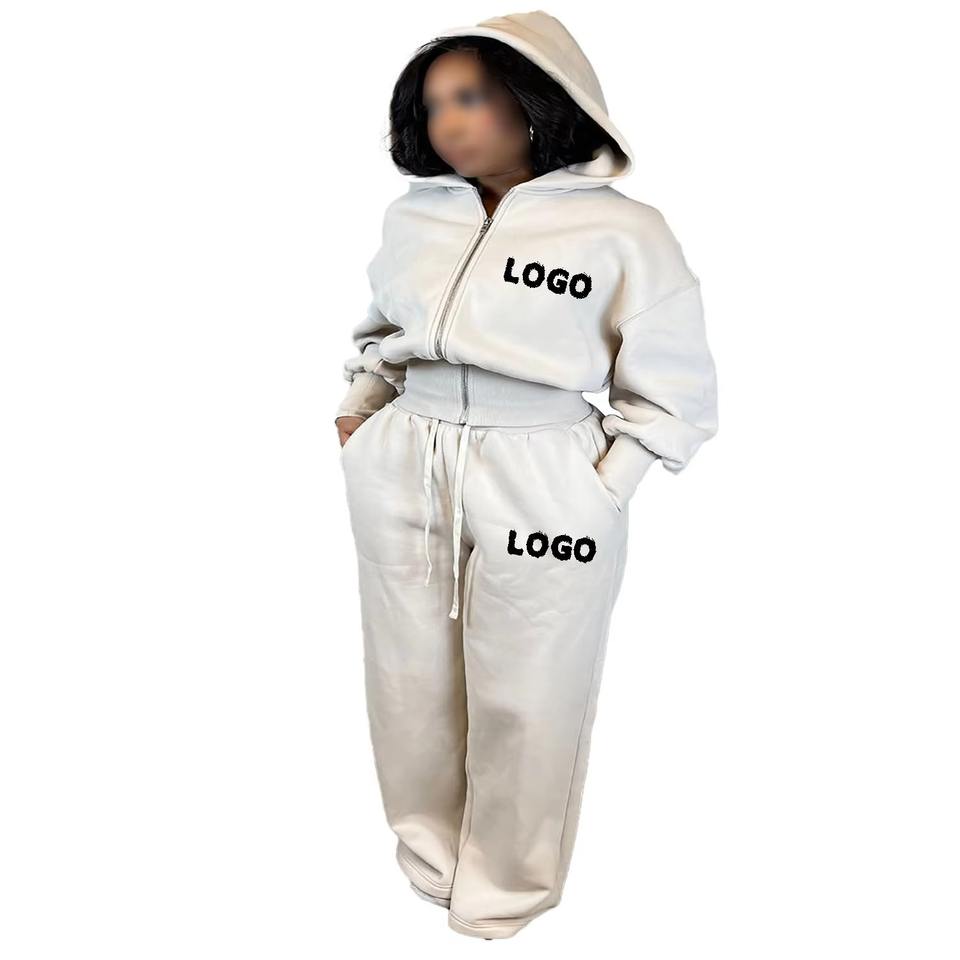 2025 New Fashion Custom Logo Women's Full Zip Hooded Sweatsuit With Cargo Pockets 2025 Casual Sport Tracksuit