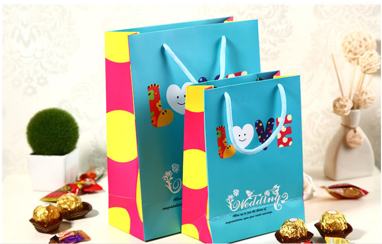 2025 New Fashion Custom Size Colorful Packaging Printed Logo Ribbon Favor Small Luxury Foldable Portable Paper Gift Bags Handles