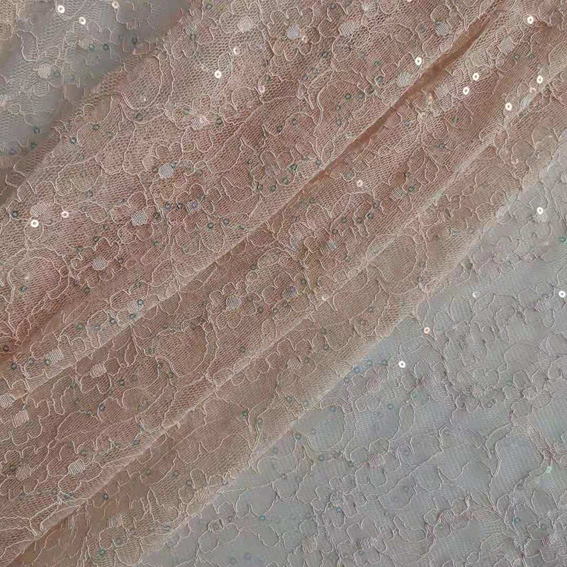 2025 New Fashion Elegant Pearls Sequin Bridal Beaded Stretch Silver Sequin Lace Fabric Orange for Dresses