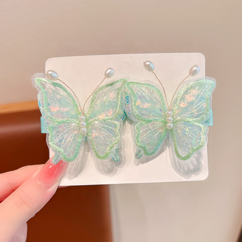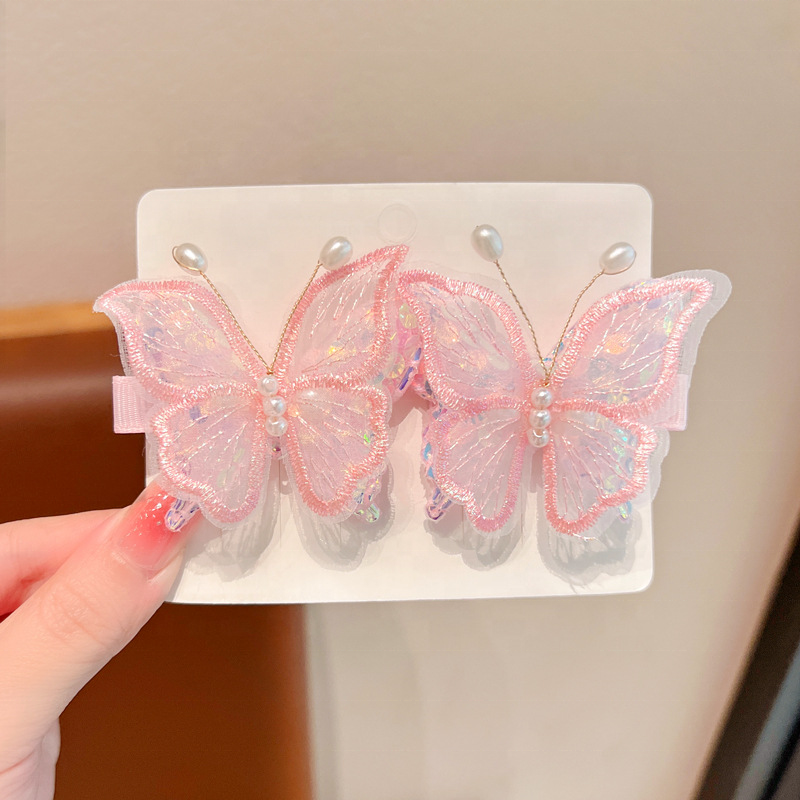 2025 New Fashion Embroidery Hairpin Mesh Pearl Butterfly Hair Clips for Girl