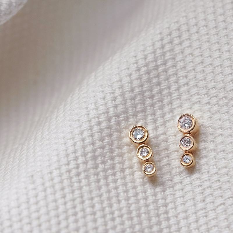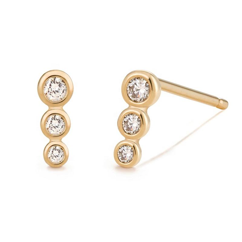 2025 New Fashion Sterling 925 Silver 14k Gold Plated Jewelry Cheap Triple Cubic Zirconia Mini bar Stud Earrings