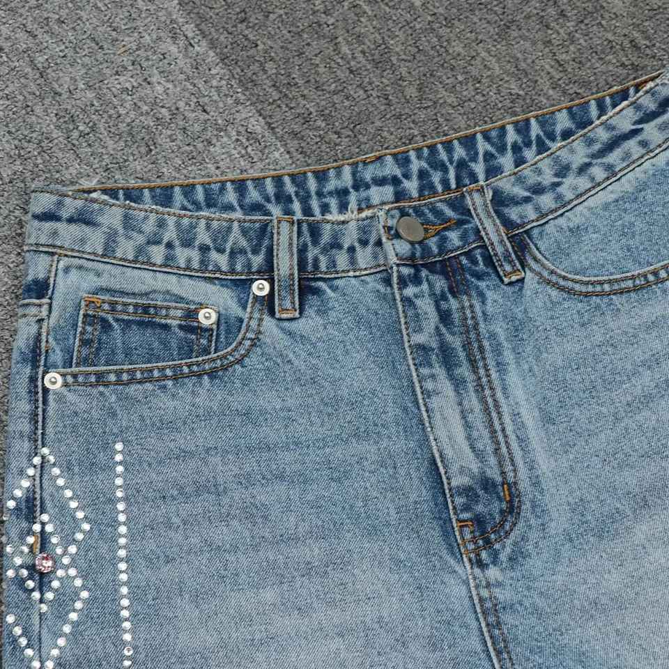 2025 New Fashion Streetwear Custom Summer OEM Vintage Wash Jorts Men Jeans Shorts with Rhinestones Denim Shorts