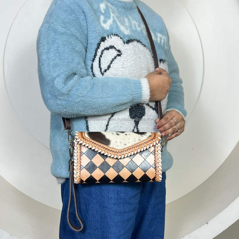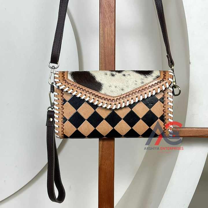Product Name:Hand Tooled Checkered Leather Crossbody Mini Bag