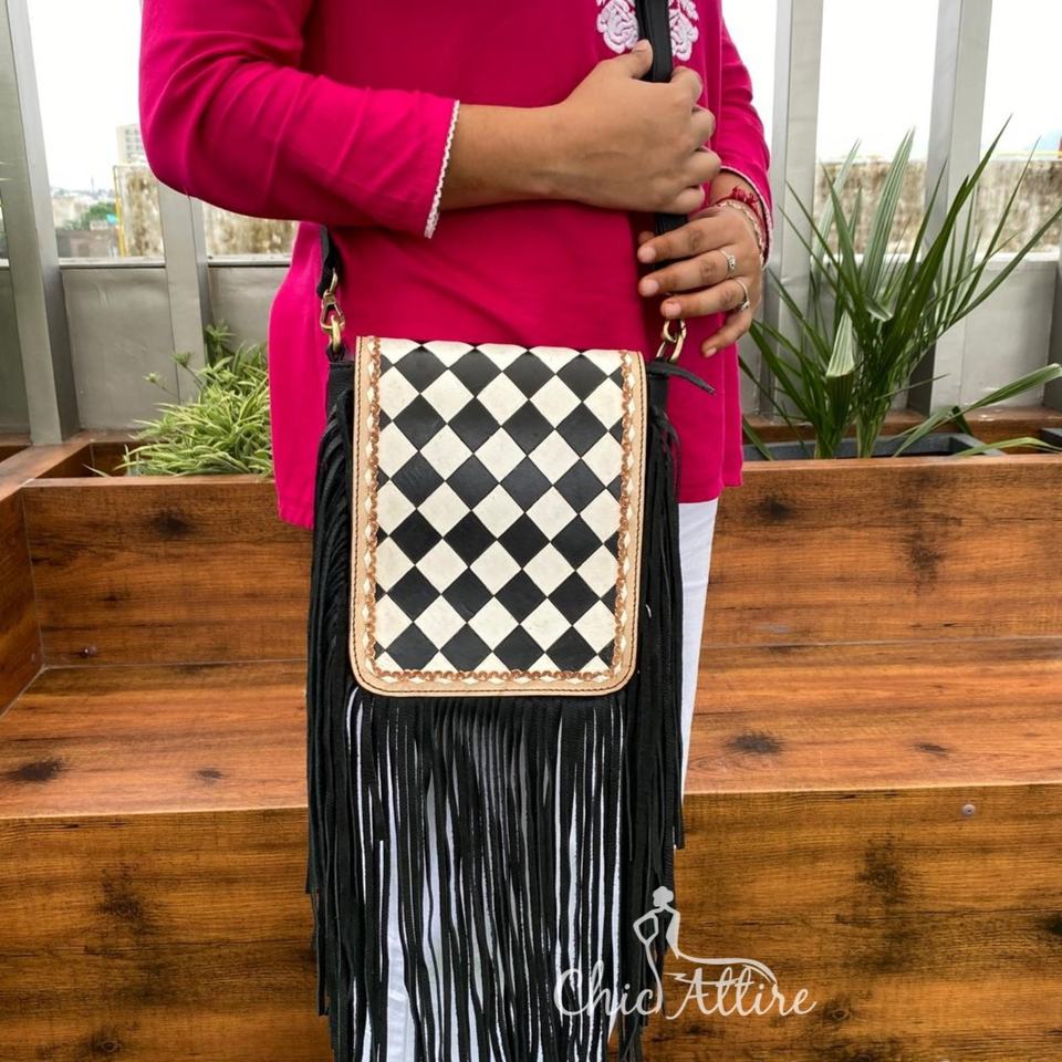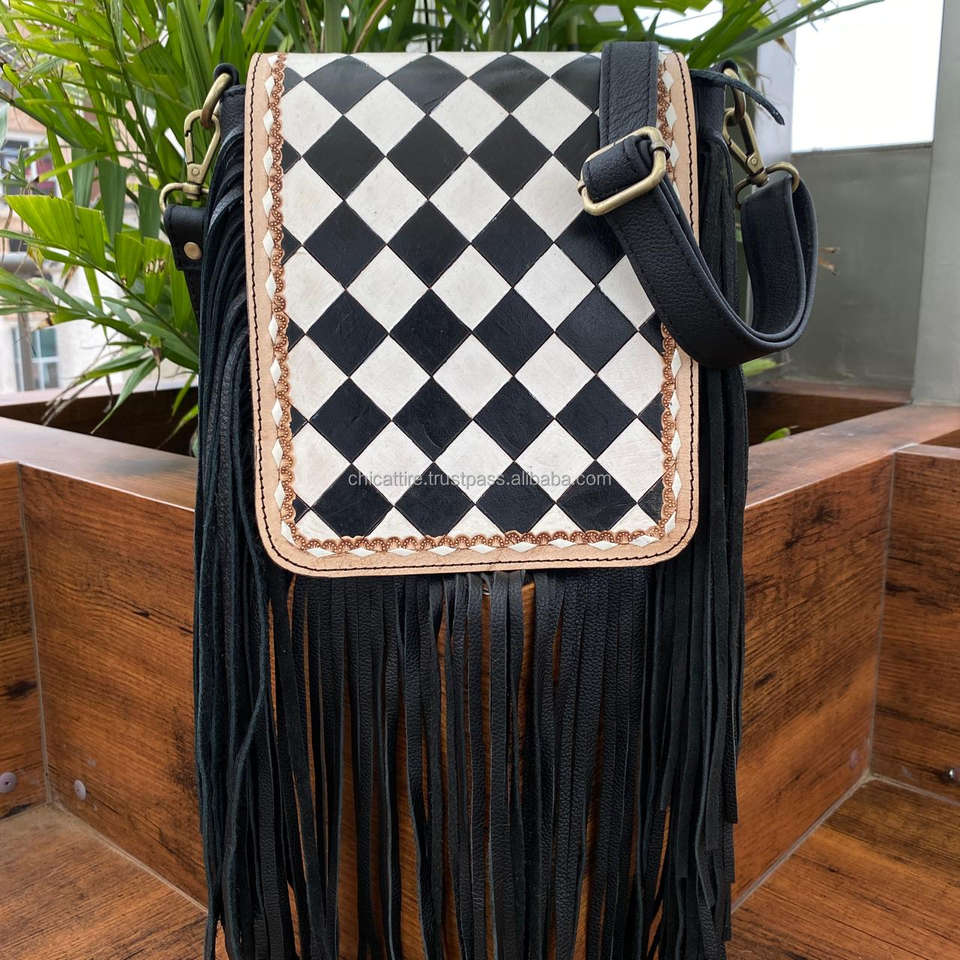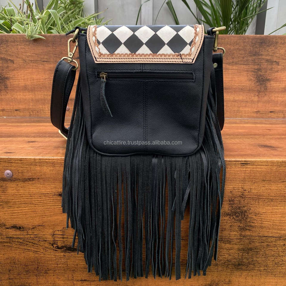 Product name:Hand Tooled Genuine Leather Fringe Crossbody Bag