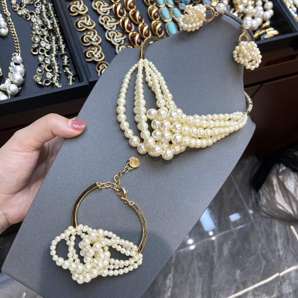 2025 New High Quality Custom Vintage Pearl Necklace Set Full Neck Choker Covering Copper Beads Chain for Anniversary