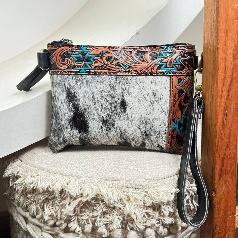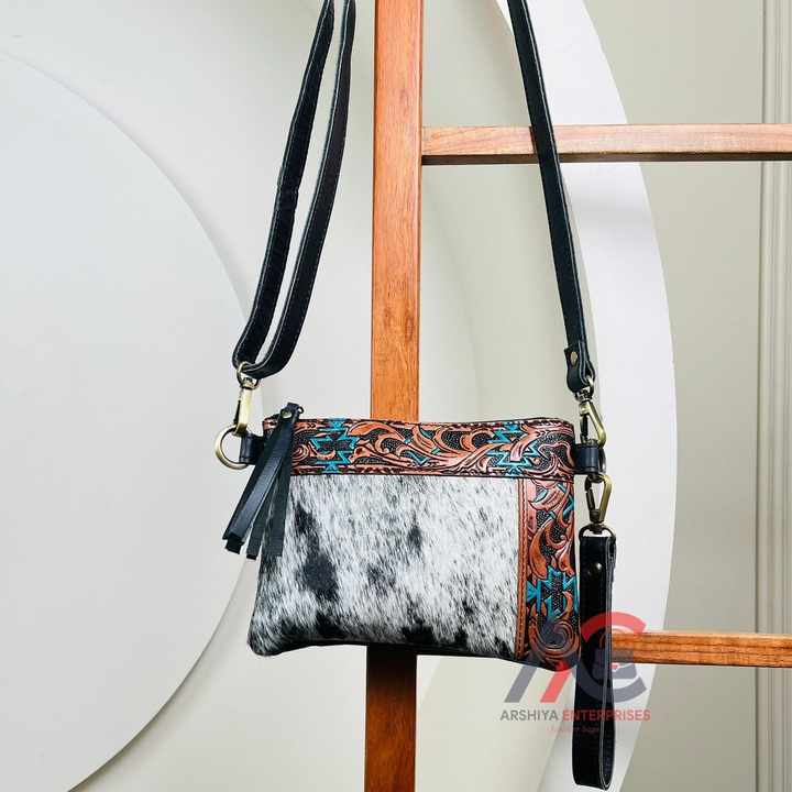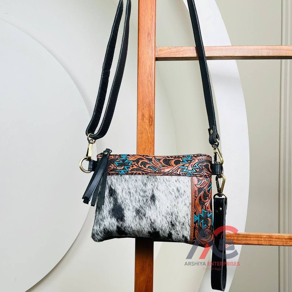 Hand Tooled Cowhide Fashionable Crossbody Bag