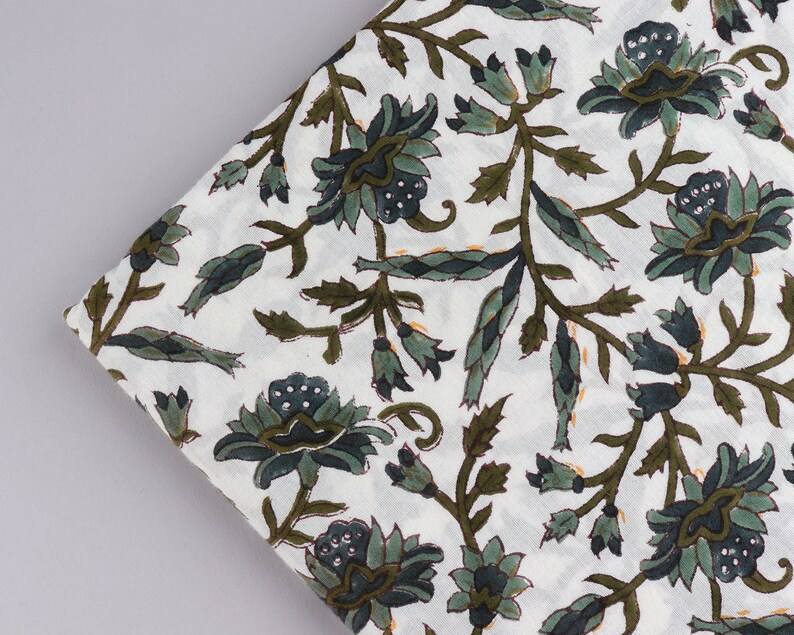 2025 New Juniper Green Peacock Blue Indian Floral Hand Block Printed 100% Pure Cotton Cloth Fabric Bags Curtains Covers Boys'