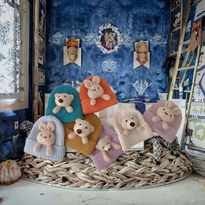 2025 New Kawaii Stretchy Cuffed Winter Hats Infant Warm Knit Cap Cute Cartoon Kids Beanie Hats for Girl
