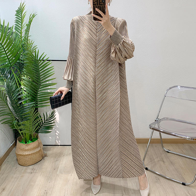 2025 New Lantern Sleeve Loose Maxi Dress Embossed Thick Woven Fabric Natural Waistline Washable Elegant Casual Women's Dress