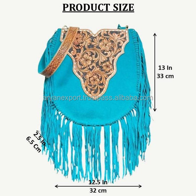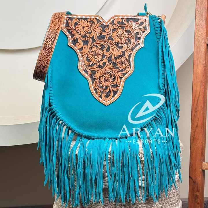 Product name:Hand Tooled Suede Leather Fringe Crossbody Bag