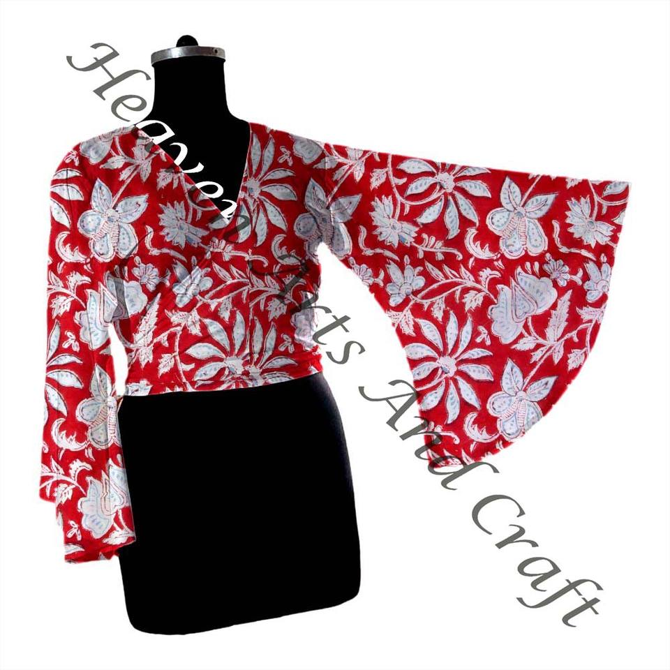 Model Number:Hand Block Print Cotton Tie Tops Bell Sleeves