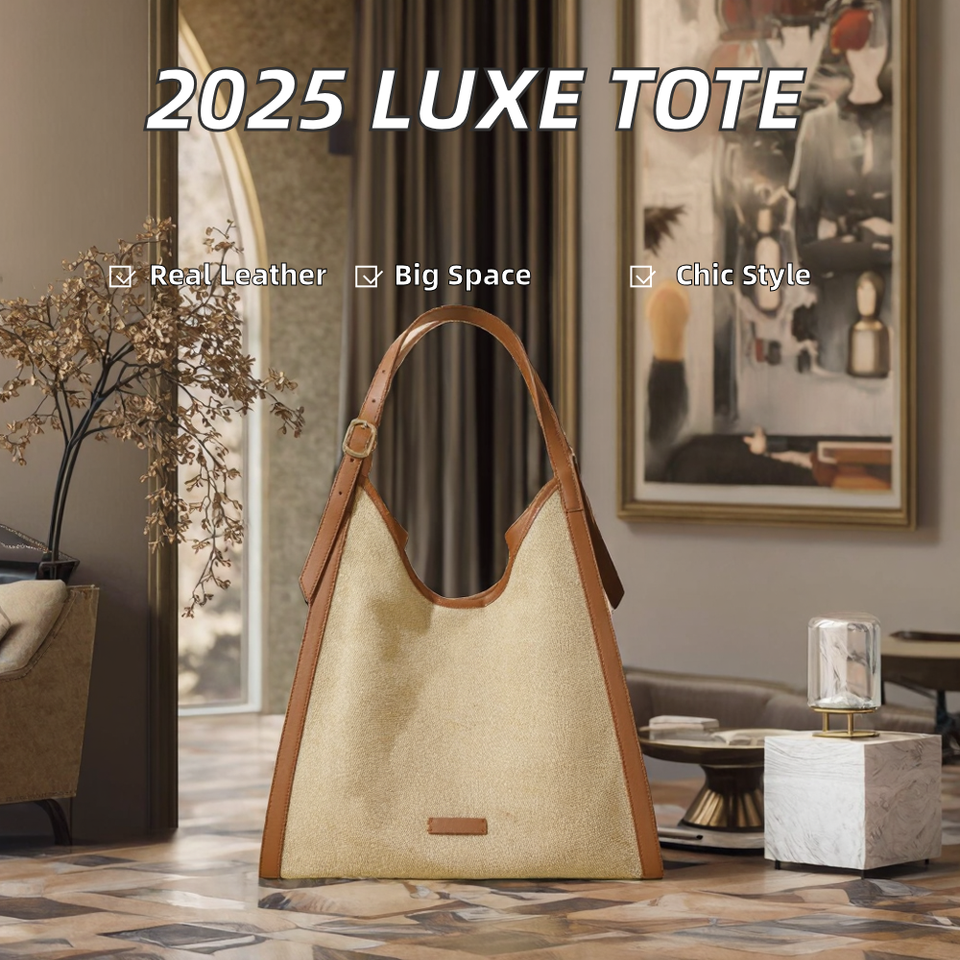 2025 New Luxury Designer Cowhide Leather Crossbody Handbags Women Large Capacity Genuine Leather Cotton Linen Tote Bag Portable