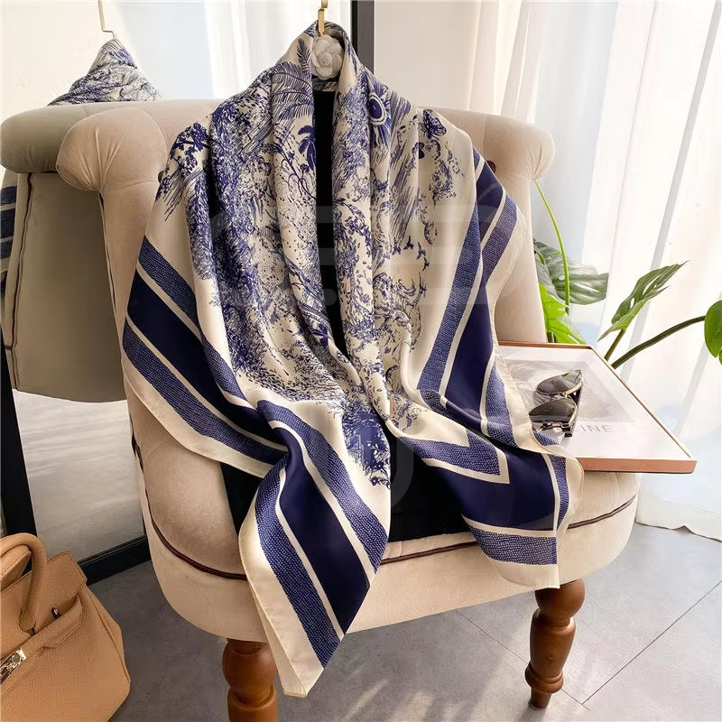 2025 New Luxury Large Square Silk Scarves for Women Spring Character Casual Style Digital Print Multi-Functional Fashion
