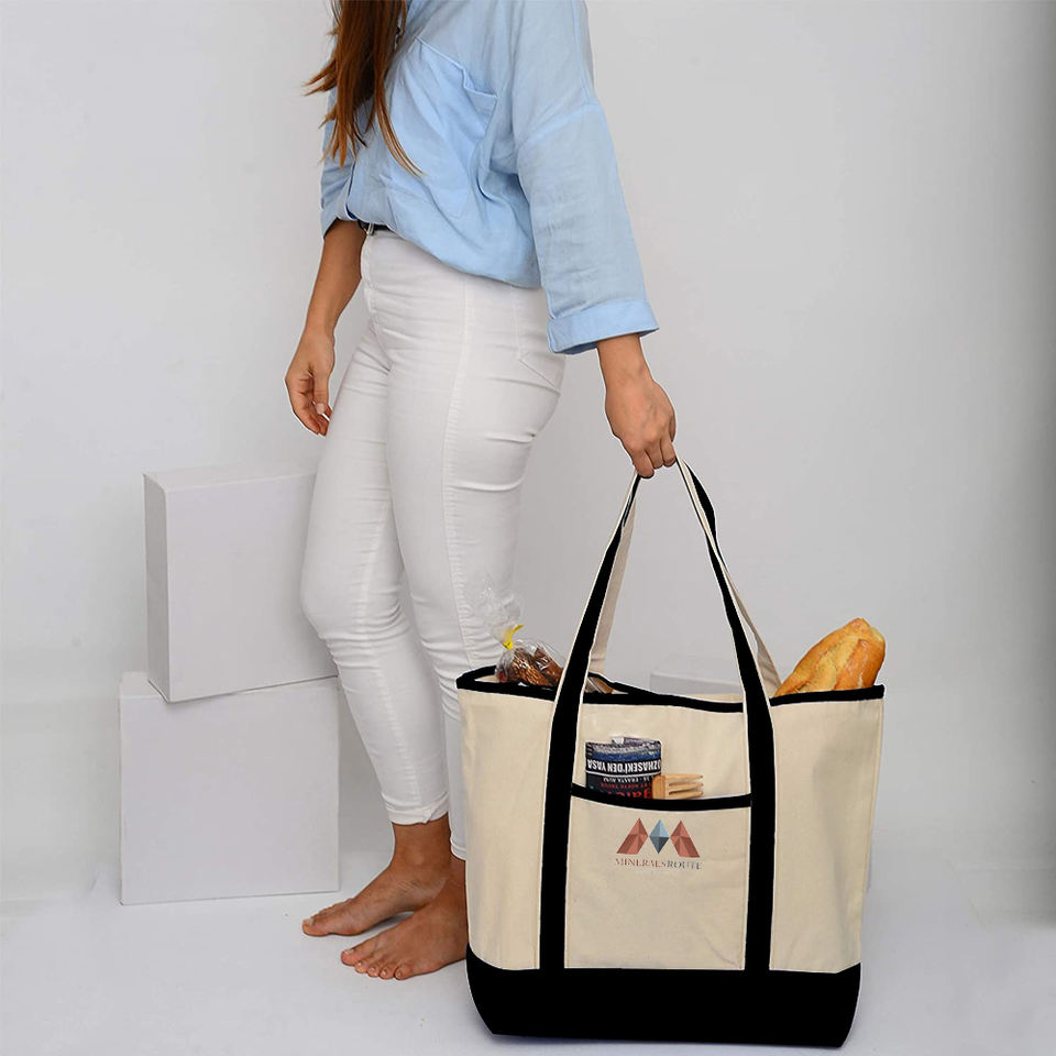 2025 New Medium Plain Canvas Tote Bag with Zipper Closure and Customized Logo Printing for Storage
