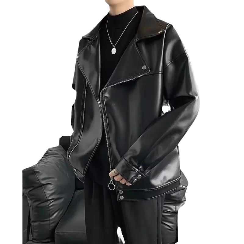 2025 Men's Trendy Brand Leather Jacket Casual Style Zipper Loose Fit Winter Thin Canvas Material Printed Motorcycle Waterproof
