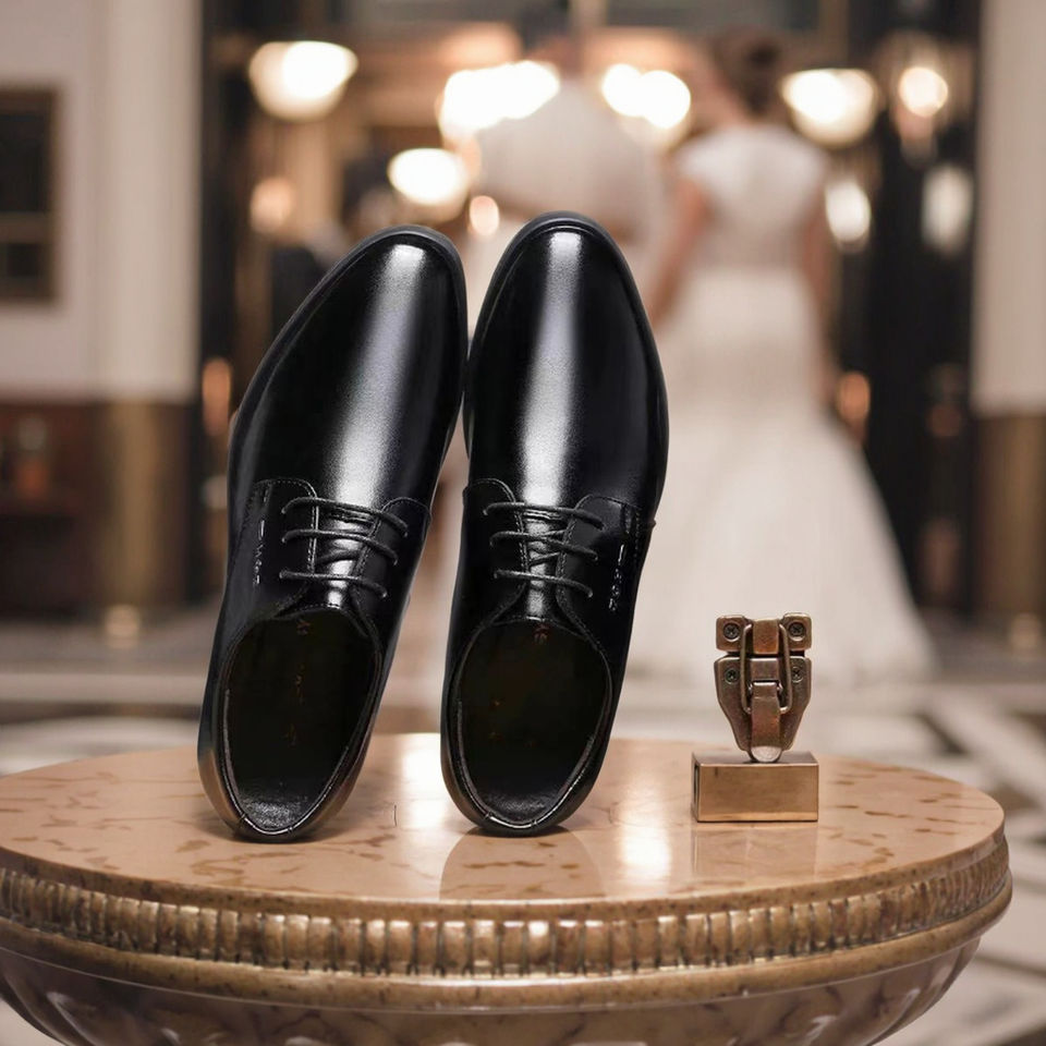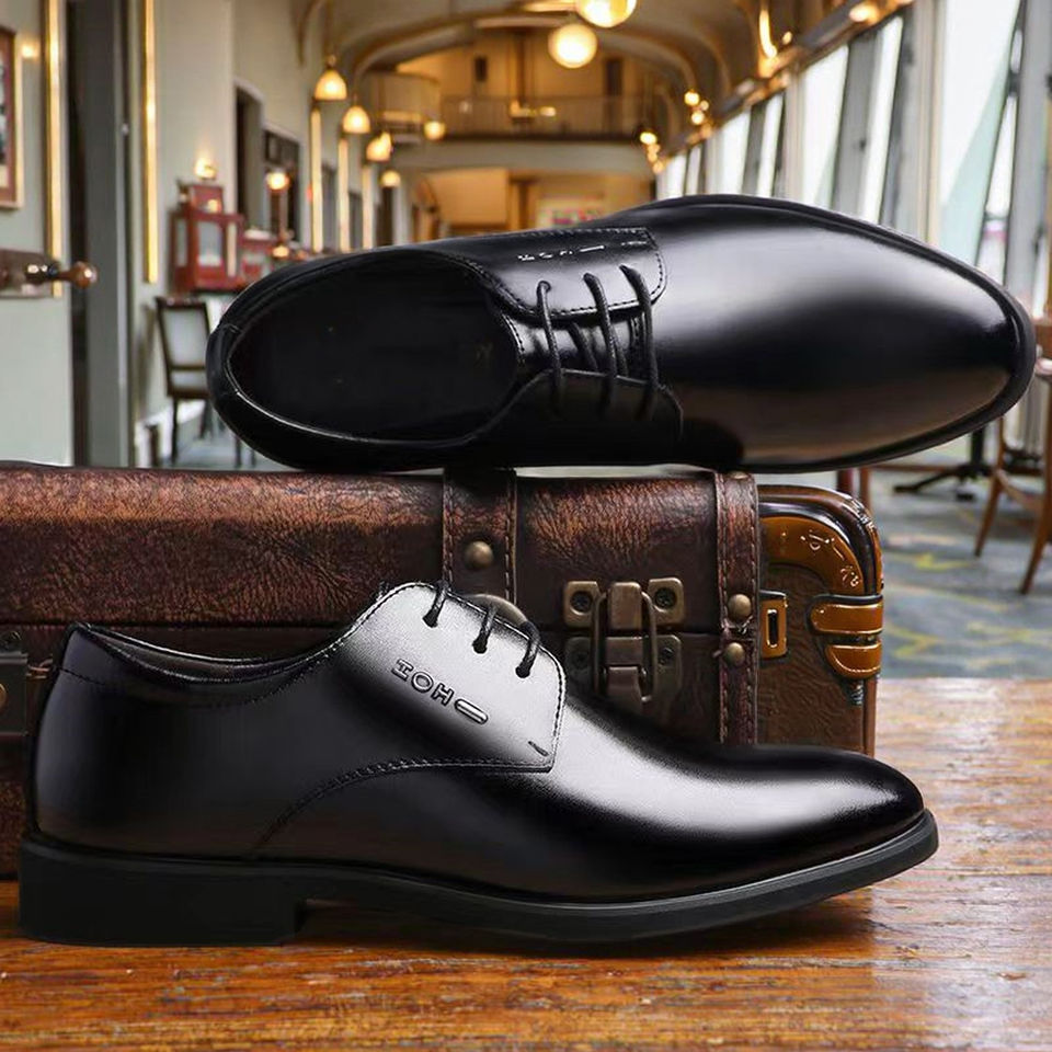 2025 New Model Men's Business Formal English Style High Top Genuine Leather Shoes Waterproof Breathable Anti-Slip Pointed Toe