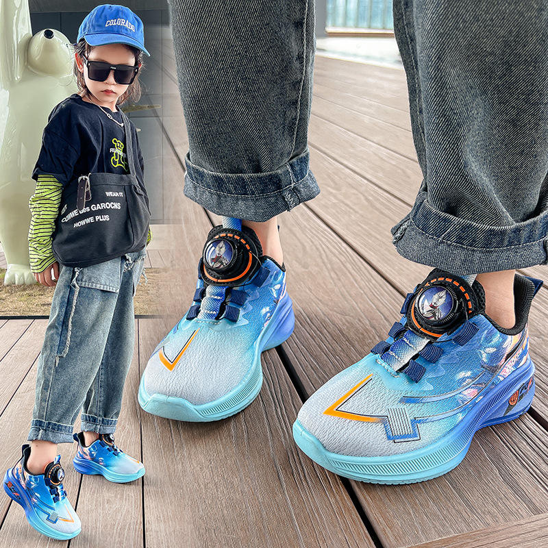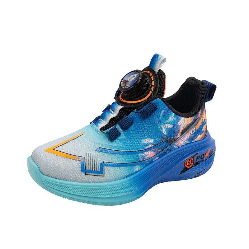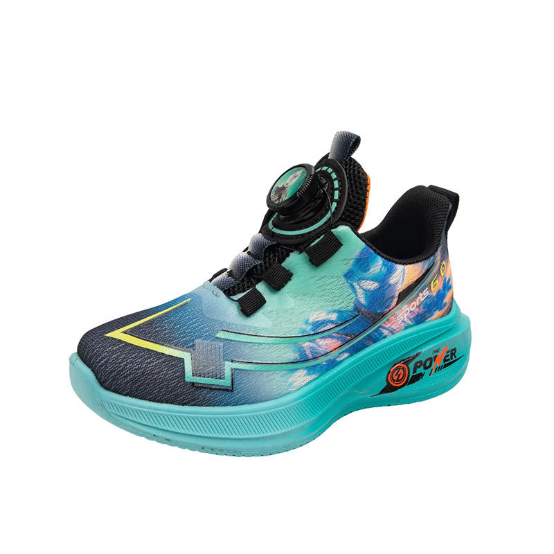 2025 New Models Boys' Sports Shoes Spring Autumn Medium Large Children's Mesh Running Sneakers Rotating Button Blue/Green