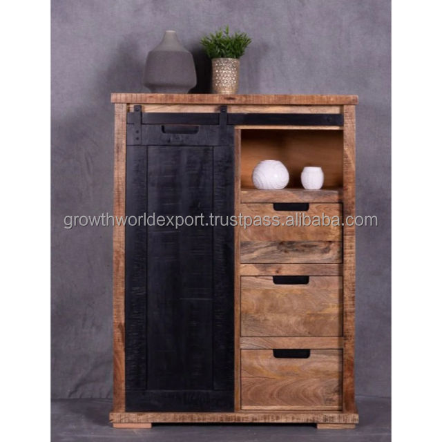 Industrial Wooden Sideboard with 1 Iron Sliding Door & 3 Drawers