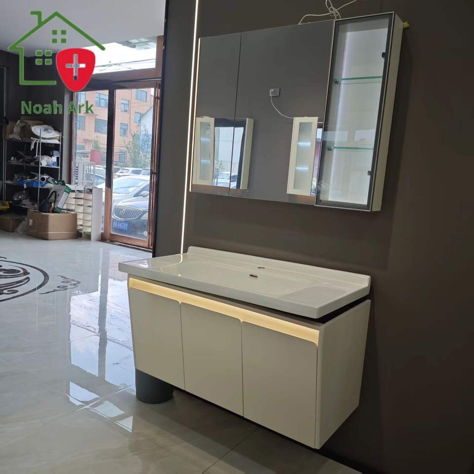 2025 New Modern Minimalist Bathroom Vanity Unit Sleek Lines Matte Finish Space-Saving Water-Resistant MDF Construction Mirror
