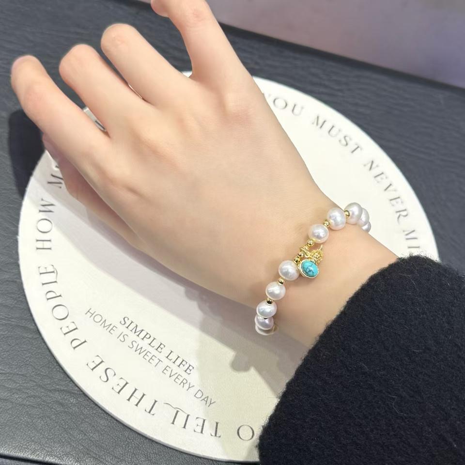 2025 New Natural Freshwater Pearl Fashion Minimalist Bracelet for Girls Handmade with Fu Character One Piece Hair