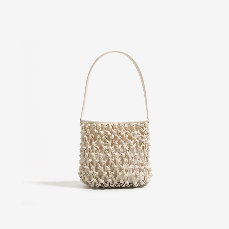 2025 New Niche Casual Women's Summer Woven Bucket Tote Bag Handmade Straw with Cover Closure for Beach Travel for Lazy Holidays