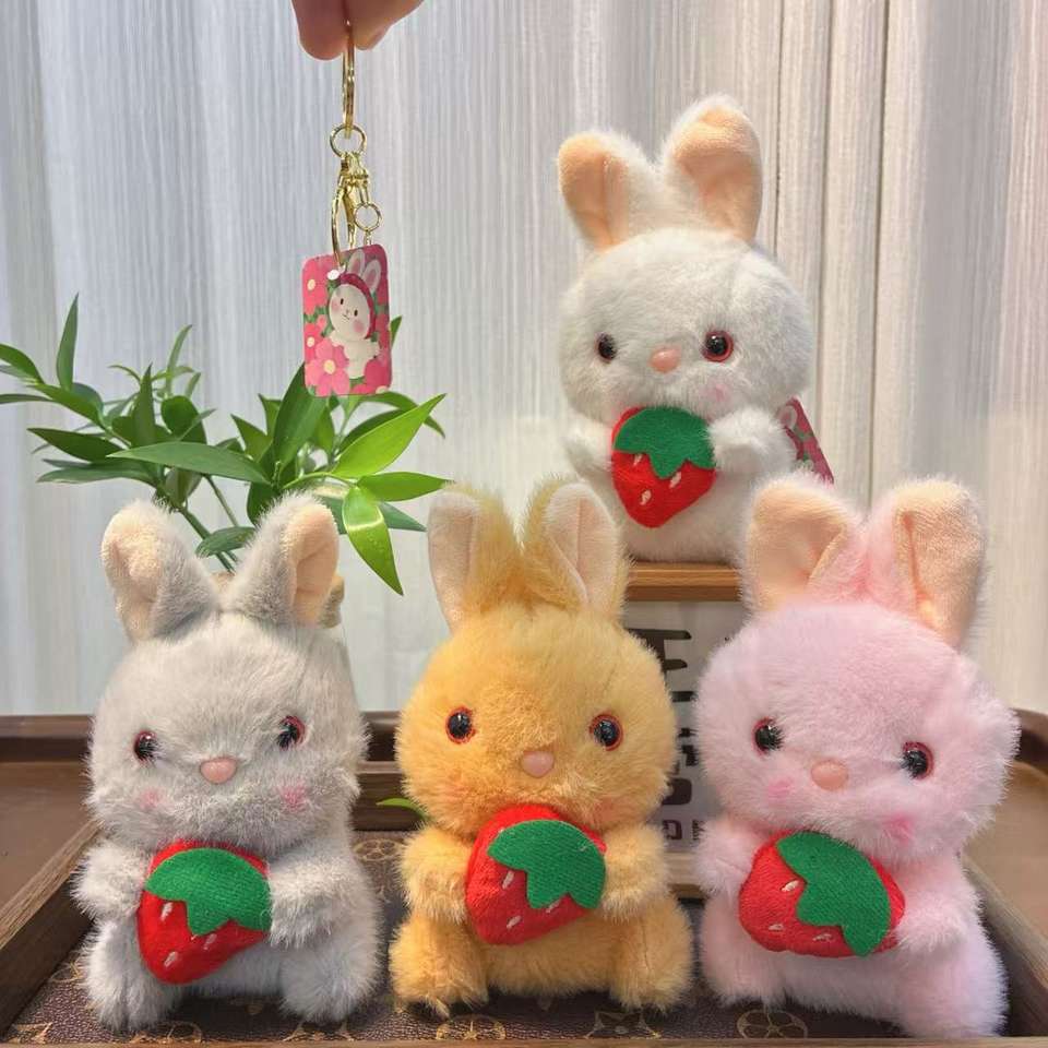 2025 New Plush Toy Rabbit 3D Shape Embossed Fashion Cartoon Keychain Pendant Doll Cute Bag Accessories Gift Wholesale