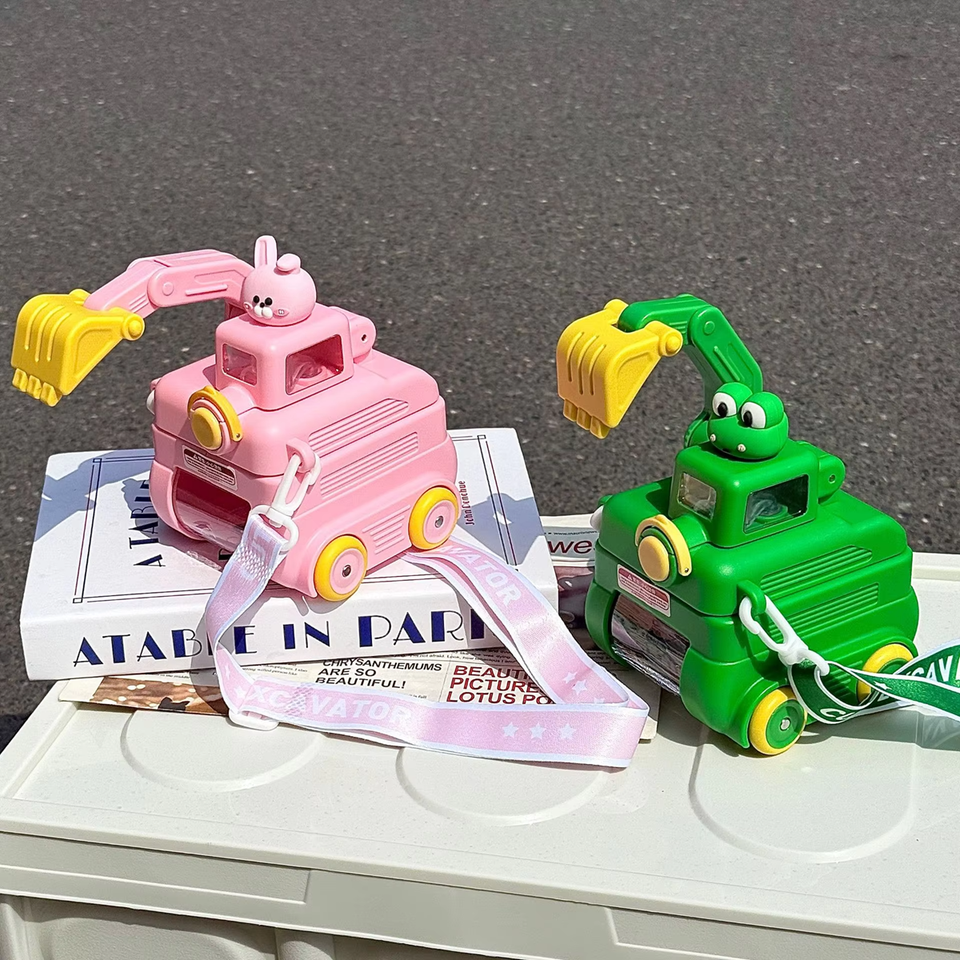 2025 New Product Hot Sale Kids Cute Toy Plastic Excavator Water Bottle with Straw Children's Back to School Cartoon Plastic Cup