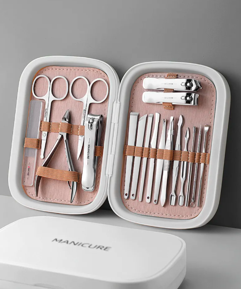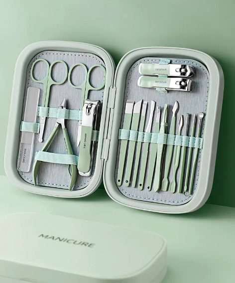 2025 New Salon Equipment 18-Piece Green Stainless Steel Professional Manicure & Pedicure Kit with 10-in-1 Nail Clippers