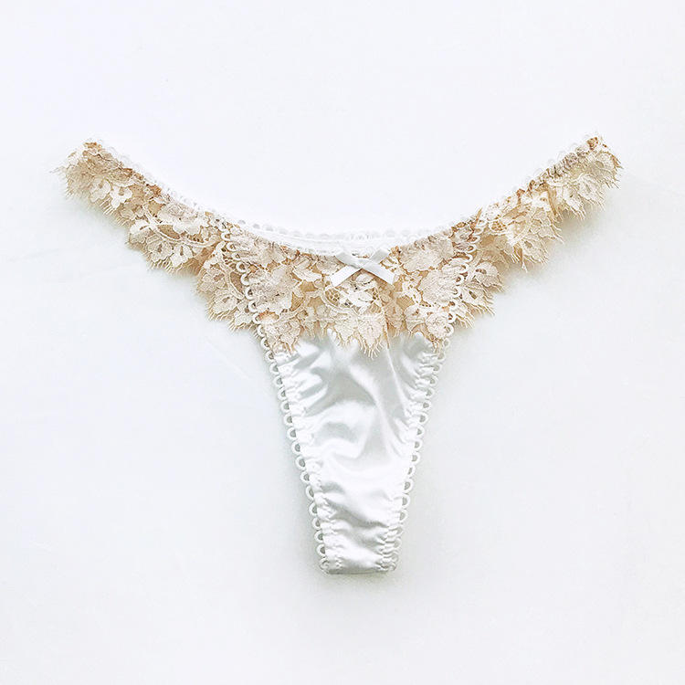 2025 New Satin Elastic Lace Low-Rise Thongs ODM Knitted Ladies Underwear Seamless Eco-Friendly XL Plain Dyed