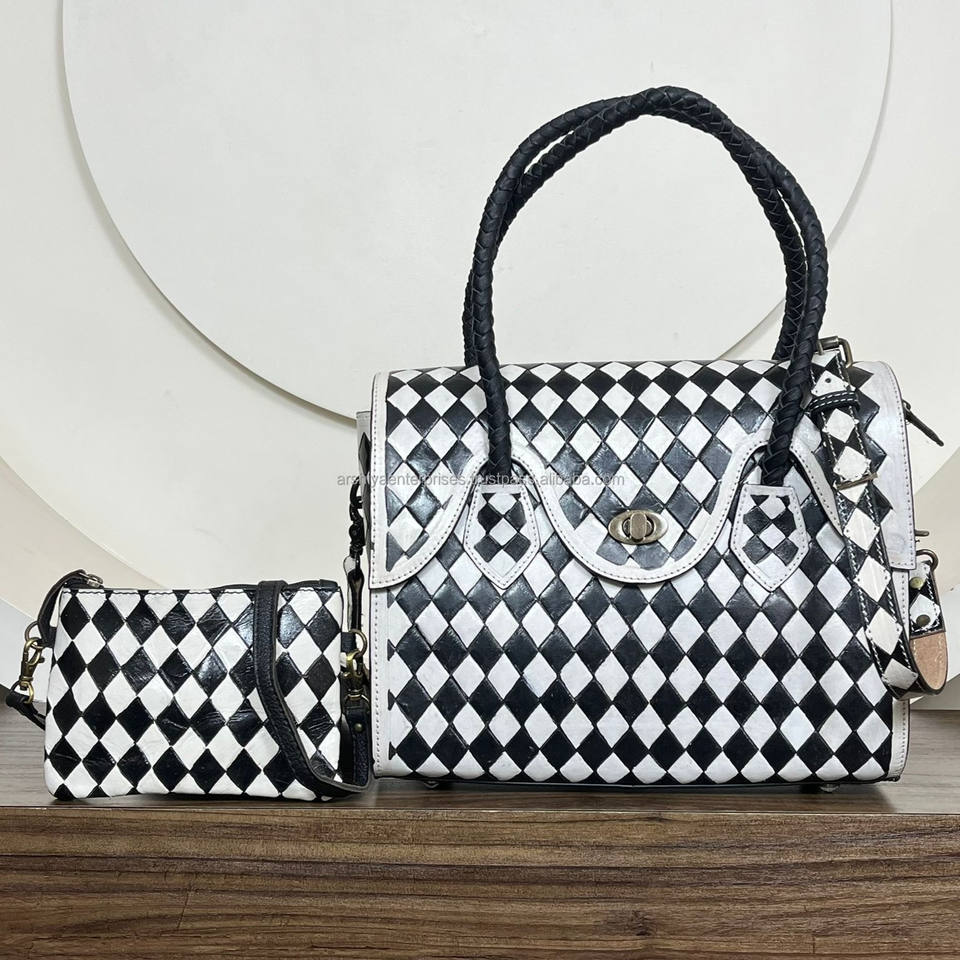 2025 New Set Fashionable 2-in-1 Checkered Design Crossbody Handheld Tote With Hand Tooled Cow Leather Ladies Crossbody Mini Bag