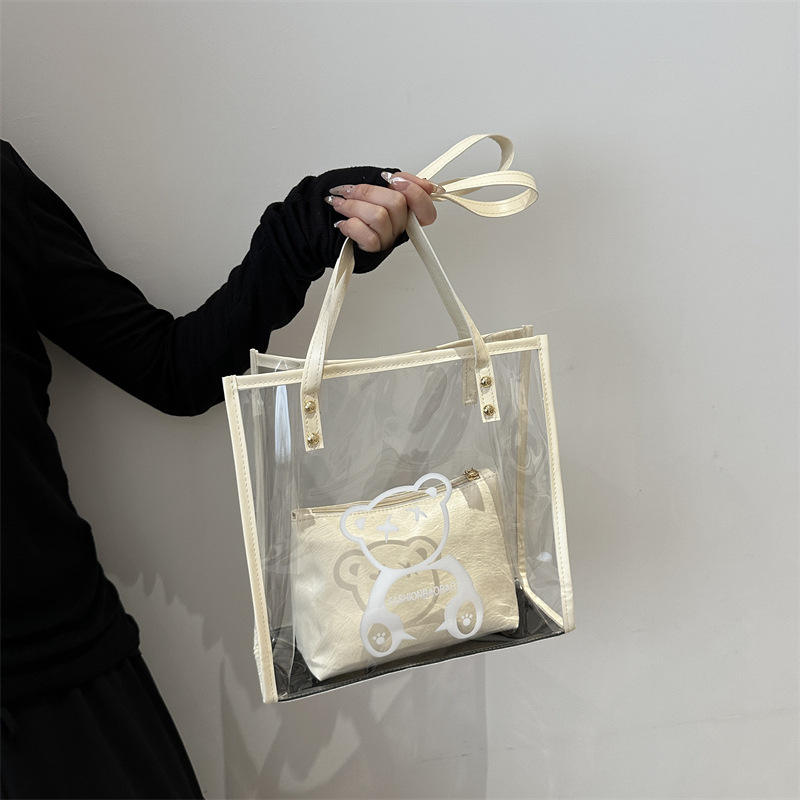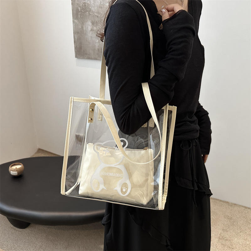 2025 New Spring Casual Jelly Beach Bag for Women Fashion Simple PVC Waterproof Tote Shoulder Bag with Open Closure