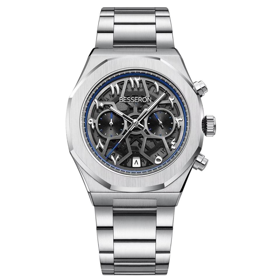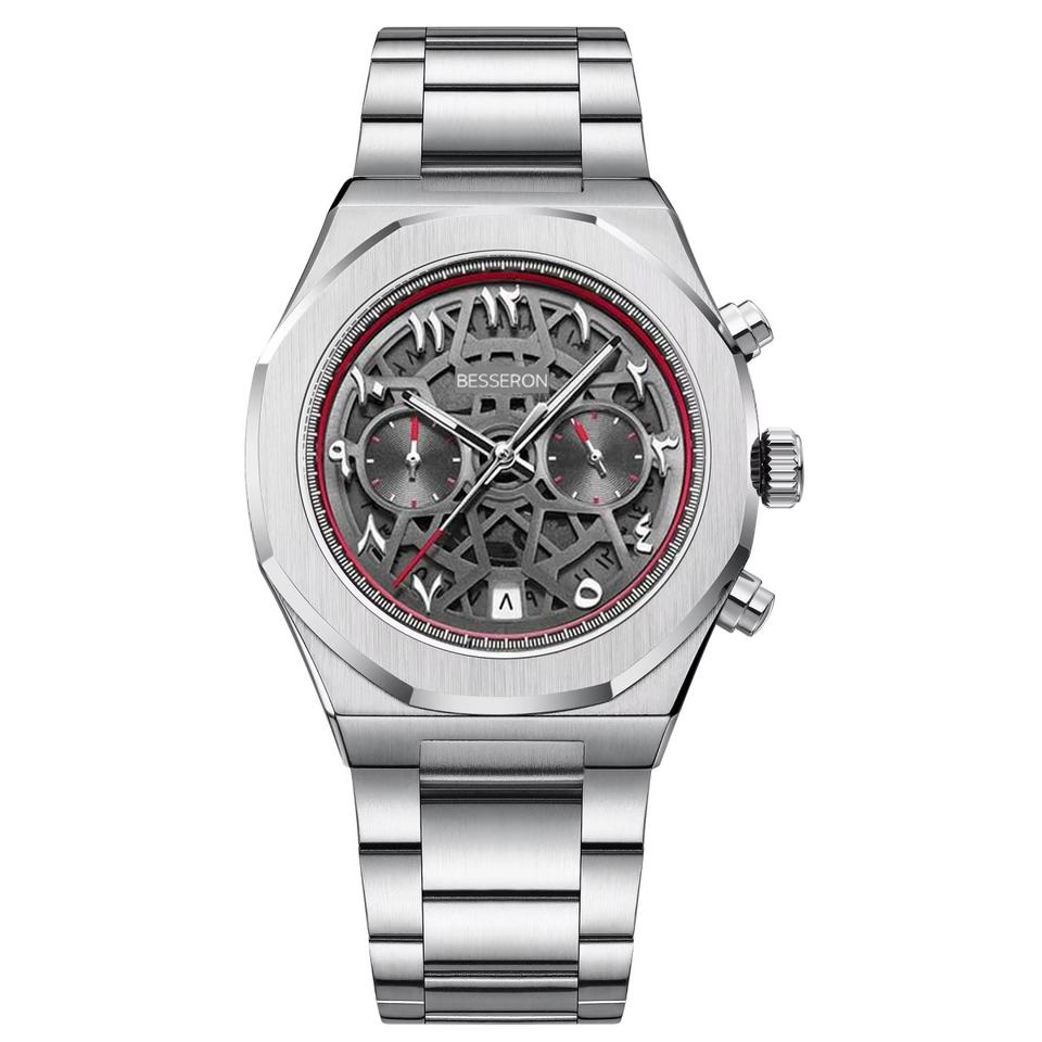 2025 New Stainless Steel Chronograph Men's Custom Logo Skeleton Arabic Dial Rubber Strap Sports Watch Quartz Waterproof