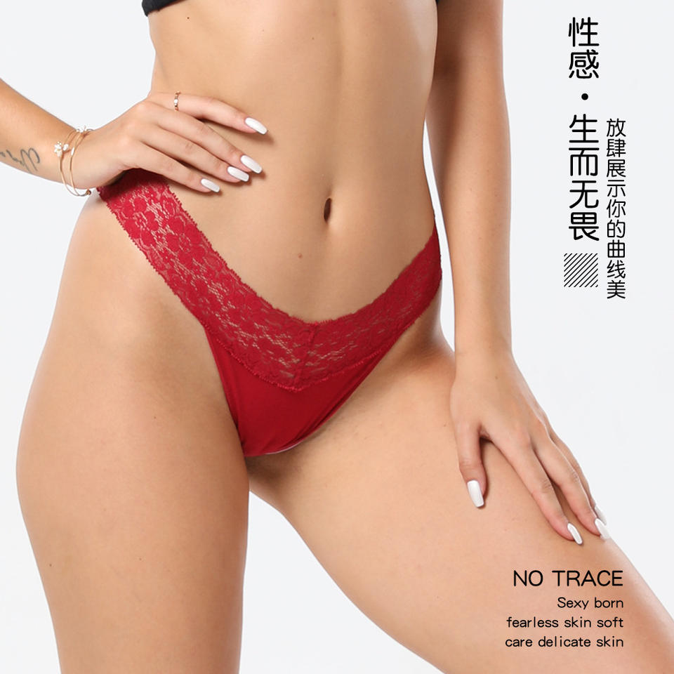 2025 New Style Comfortable Breathable T-shaped Simple Thong Low-Rise Women's Lace Seamless Knitted Underwear Pure Cotton