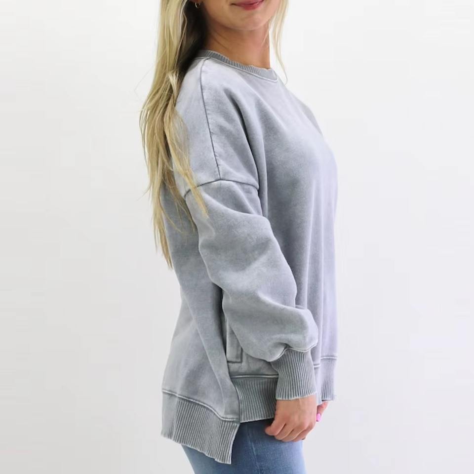 2025 New Style Cotton Fleece Factory Price Acid Wash Sweatshirts for Women Casual Loose Fit Women's Sweatshirt For Adults