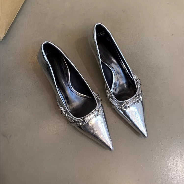 2025 New Style Elegant Black French-Style Niche High Heels Women's Commuter Shoes with Pointed Toe and Shallow Mouth