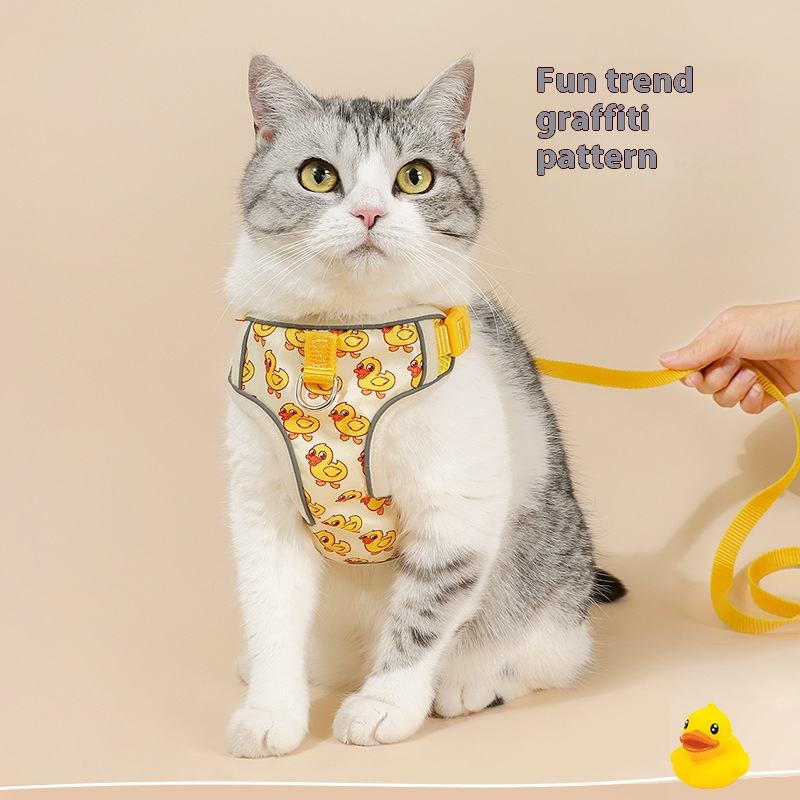 2025 New Style Cat Harness Little Yellow Duck Pattern Breathable Anti-Escape Vest With LED Lights Home Use Cat Leash