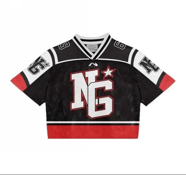 2025 New Summer American retro fashion sports loose printed Jersey uniform V-neck American football jersey