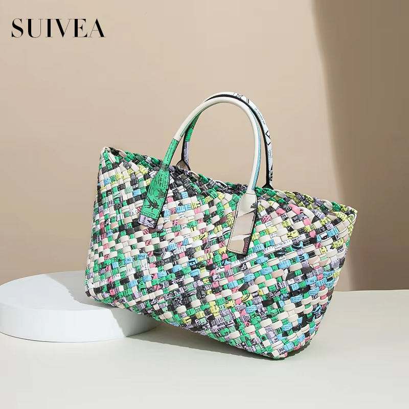 2025 New Summer Handmade Woven Bag for Women's Niche Design Color Woven Tote Bag Fashion Versatile Poster Lady Handbag
