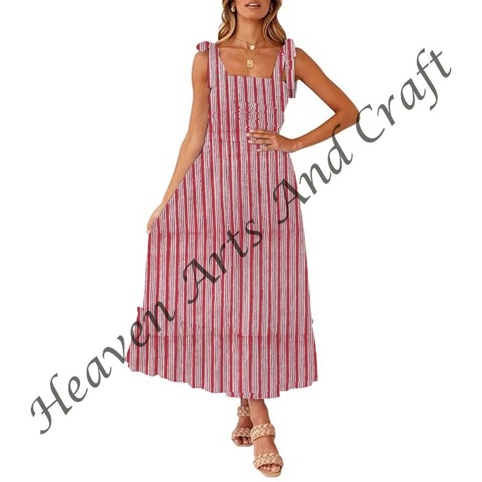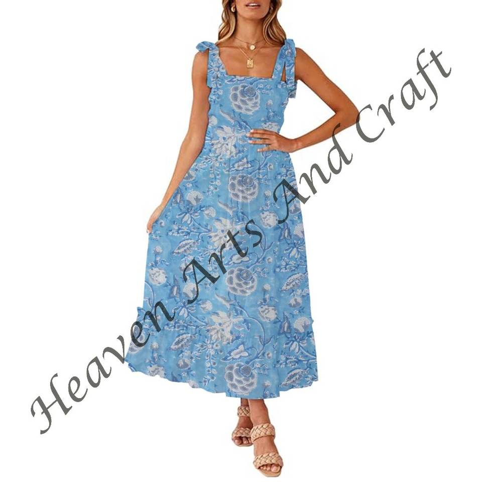 2025 New Summer Women Wear Spaghetti Strap Dress Collection Cotton Printed Dress For Summer Party Wear Spaghetti Strap Dress