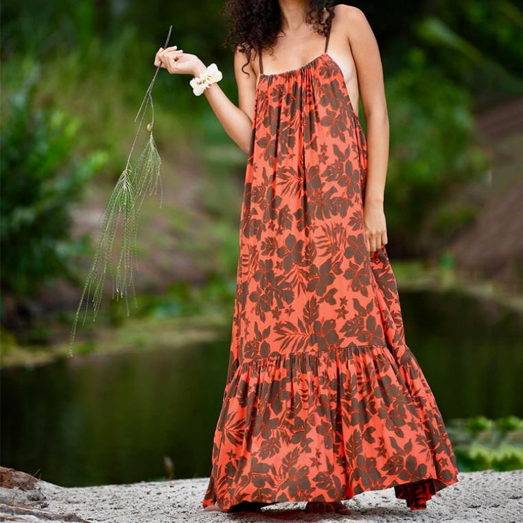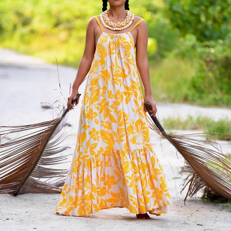 2025 New Suspender Beach Dress Floral Print Long Dress Custom Loose Rayon Hawaiian Dress