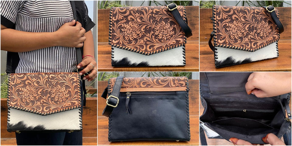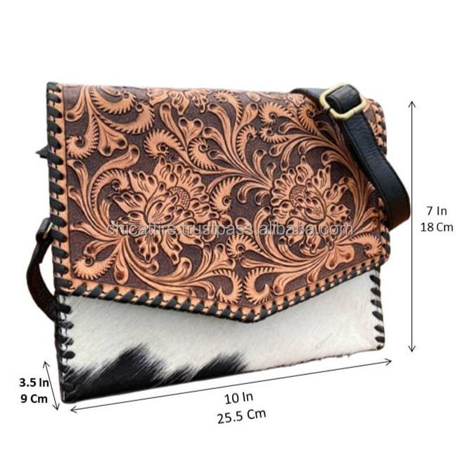 Hand Tooled Cowhide Leather Women's Crossbody Messenger Bag