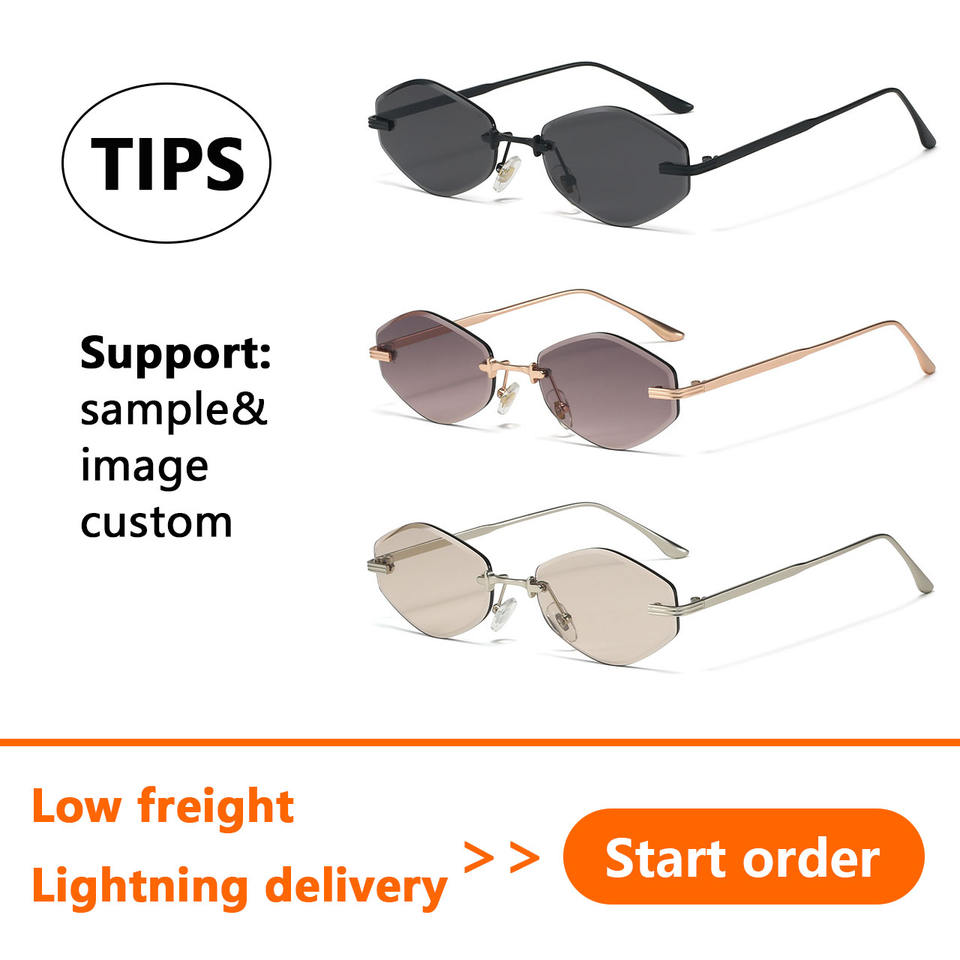 2025 New Trendy Fashion Retro Oval Eyeglasses High Quality Luxury Rimless Edge-cutting Ready to Ship Sunglasses for Women