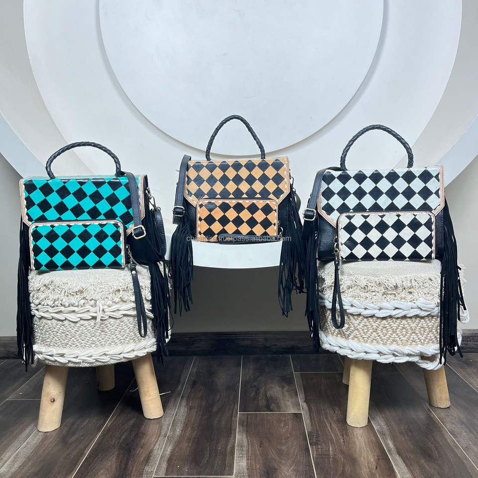 Product name:Checkered Hand Tooled Genuine Leather 2-piece Combo Set