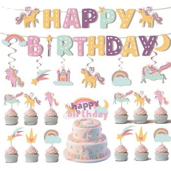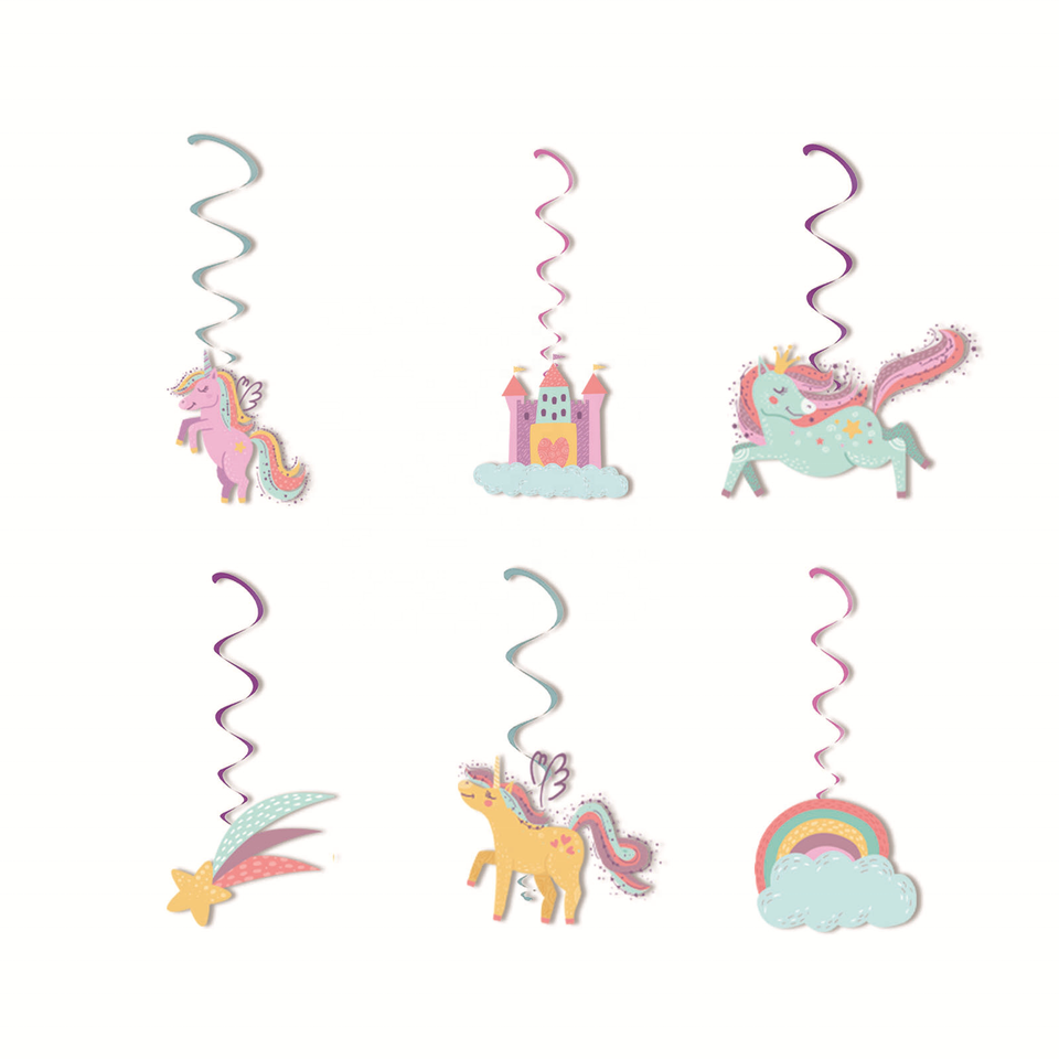 2025 New Unicorn Flag Flower Spiral Pendant for Children's Birthday Party Supplies Decorative Spiral Pendant