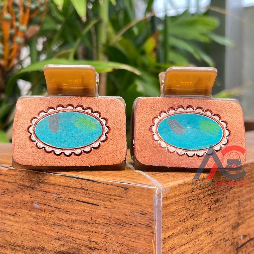 Product name:Hand Tooled Genuine Leather Mini Hair Claw Clips