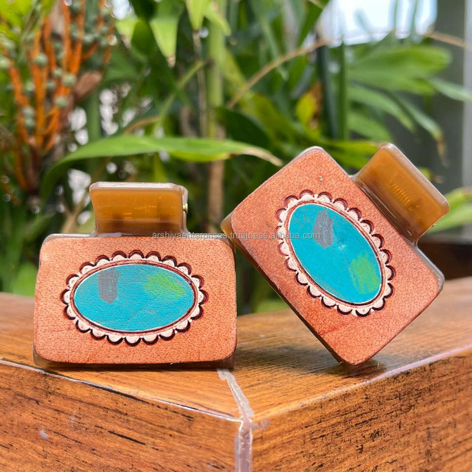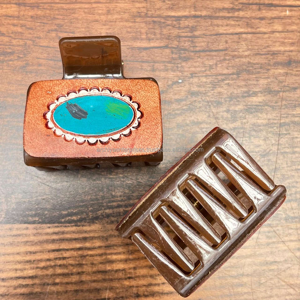 2025 New Wholesale Arrival Handmade Tooled Leather Mini Claw Clips Personalized Engraved Leather Hair Accessories for Women