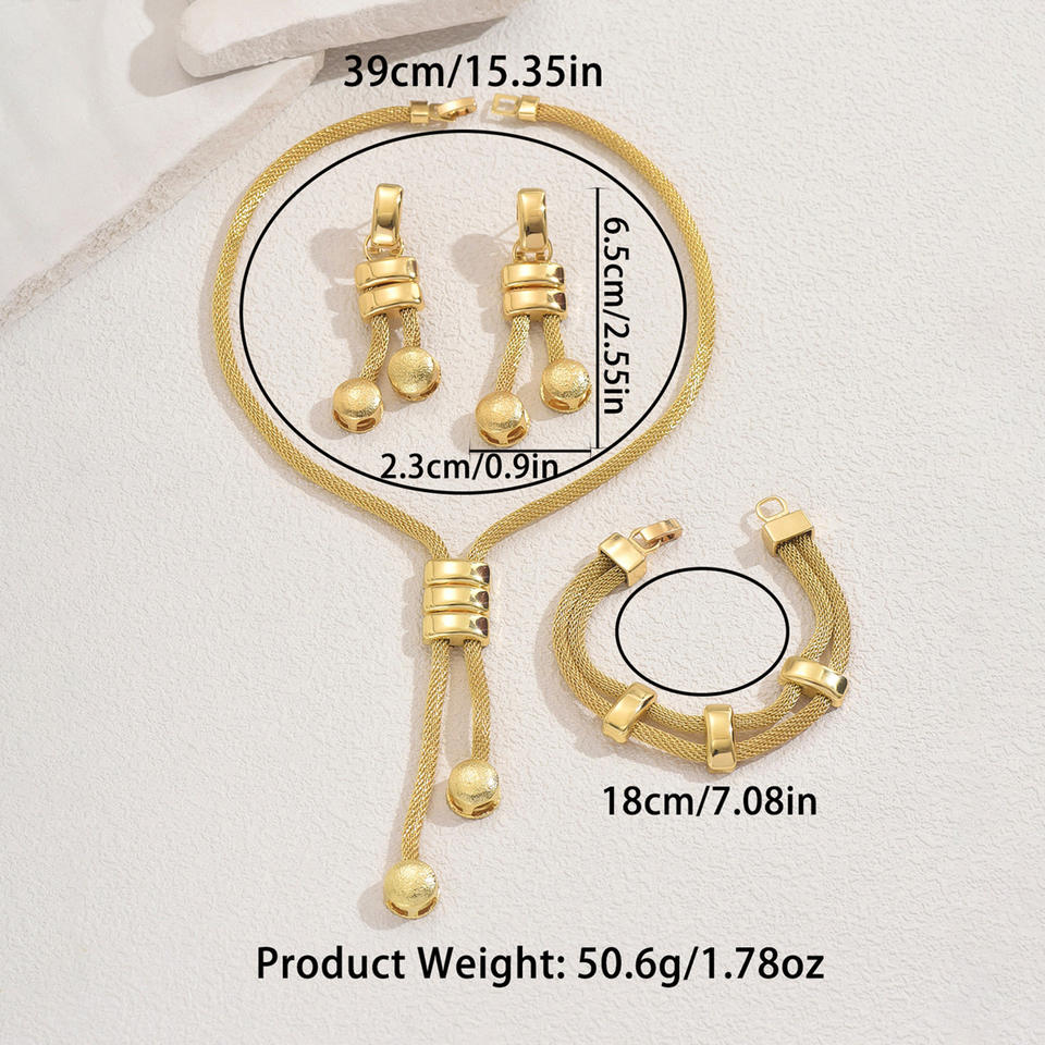 2025 New Wholesale High Quality Gold Toned Mesh Chain Jewelry Set Adjustable Necklace Earrings Bracelet